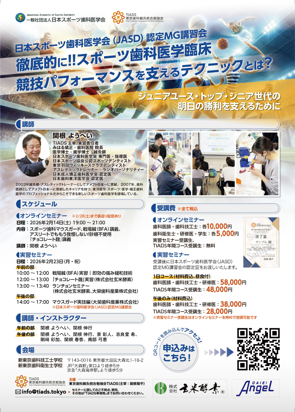 日本スポーツ歯科医学会(JASD)認定MG講習会の開催のご案内